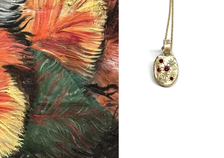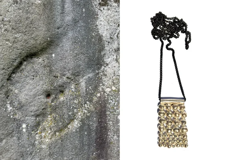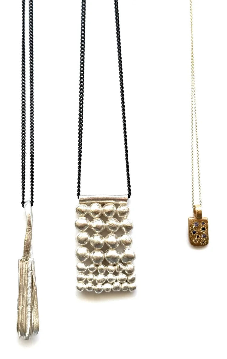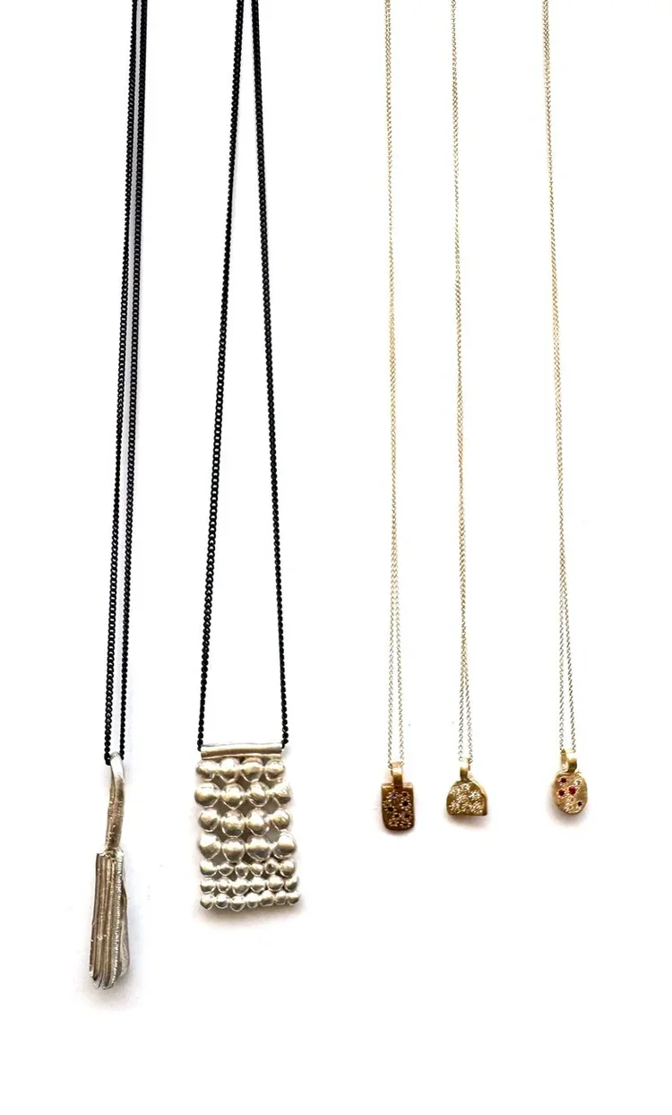 These pieces are textured and heavy, designed to serve as a tool for the wearer—providing something tangible to hold onto, offering a sense of comfort or protection when worn.They are intended to be worn on longer chains, allowing movement to become an integral part of the wearing experience, adding a dynamic element to the connection between the wearer and the piece.