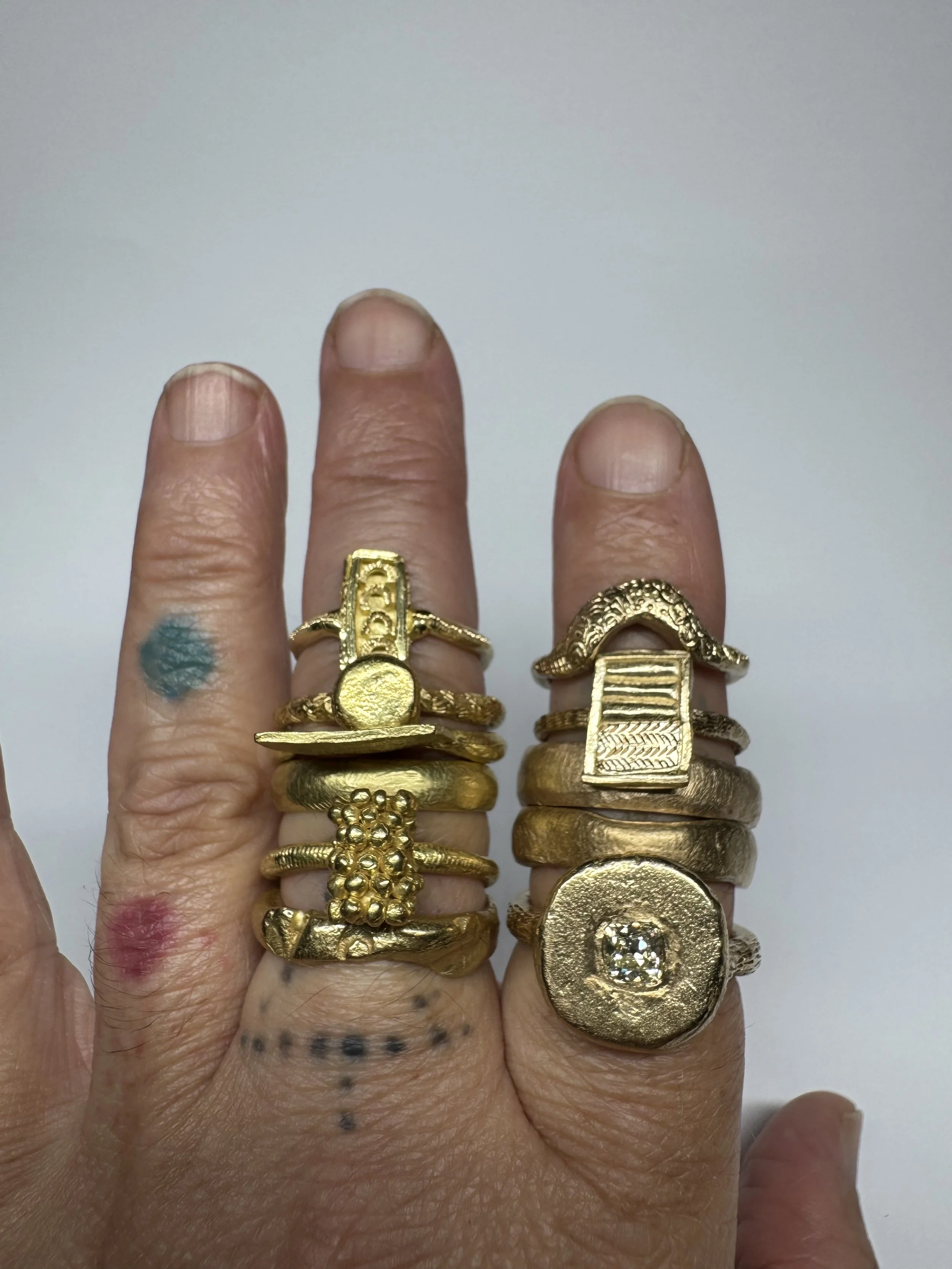 18ct yellow gold is 750/1000 pure gold, with 250/1000 silver and copper. It is also is a hard wearing metal. Traditionally wedding rings were made from 18ct yellow, due to its rich symbolic nature, gold doesn’t tarnish, and it endures, the rich yellow colour supports this.